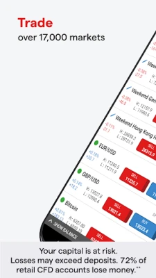 Koe IG:n, maailman johtavan CFD-palveluntarjoajan, kehittynyt kaupankäyntisovellus. IG tarjoaa pääsyn yli 17 000 rahoitusmarkkinaan helposti ja vaivattomasti, missä ikinä liikutkin. Käy kauppaa valuutoilla, osakkeilla, indekseillä, hyödykkeillä ja kryptovaluutoilla yhden edistyksellisen alustan kautta. Hyödynnä ainutlaatuisia markkinatietoja ja asiantuntija-analyysejä ympäri vuorokauden. Reaaliaikaiset hinnat ovat käytettävissäsi jo ennen kirjautumista. IG-sovellus on suunniteltu mukautumaan juuri sinun tarpeisiisi ja sitä päivitetään jatkuvasti parhaan mahdollisen kaupankäyntikokemuksen takaamiseksi.