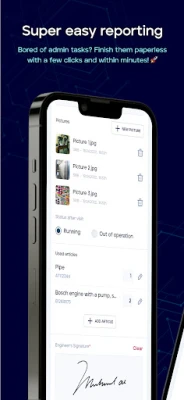 Rakenna asiakasluottamusta ennennäkemättömällä läpinäkyvyydellä. Sovelluksemme avulla teknikot voivat luoda yksityiskohtaisia huoltoraportteja vaivattomasti suoraan paikan päällä, tarjoten asiakkaillesi selkeän kuvan tehdystä työstä välittömästi. Tämä nopea ja selkeä raportointi ei ainoastaan virtaviivaista hallintoa, vaan myös vahvistaa asiakassuhteita. Digitaalinen alustamme muuttaa päivittäisen työn turhautumisen iloksi, jättäen kynän ja paperin historiaan ja varmistaen, että teknikkosi voivat keskittyä siihen, mitä he osaavat parhaiten – erinomaiseen palveluun.