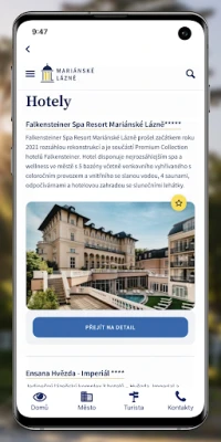 Matkailijoille sovellus paljastaa Mariánské Lázněn lumoavan tarjonnan digitaalisena matkaoppaana. Sen runsas tapahtumakalenteri esittelee festivaalit, konsertit ja muut kulttuurimenot, taaten ettei yksikään merkittävä tilaisuus jää kokematta. Tutustu inspiroiviin vinkkeihin unohtumattomille retkille kaupungissa ja sen ympäristössä, ja hyödynnä kattavaa listausta suositelluista majoitusvaihtoehdoista ja ravintoloista, jotka tekevät vierailustasi entistäkin miellyttävämmän.