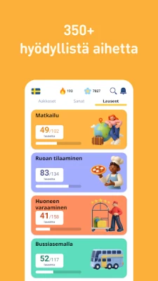 FunEasyLearnin tiimi, joka koostuu kielitieteilijöistä ja opettajista, on kehittänyt uraauurtavan oppimismenetelmän. Yhdistämällä ääntämissäännöt, laajan sanavaraston ja käytännölliset fraasit yhdeksi saumattomaksi kokemukseksi, voit paitsi oppia, myös sisäistää kielen tehokkaasti. Sovellus sisältää yli 6 000 jatkuvasti kasvavaa ruotsin sanaa, jotka on järjestetty 7 eri tasolle ja 200 aiheeseen kattaen kaiken yleisimmistä substantiiveista adjektiiveihin. Lisäksi käytössäsi on yli 5 000 päivittäisessä keskustelussa ja matkailussa tärkeää ruotsin lausetta, luokiteltuna 10 tasolle ja 120 aihealueeseen. Olitpa aloittelija, keskitason opiskelija tai kokenut kielenkäyttäjä, FunEasyLearn tarjoaa räätälöityä sisältöä jokaiselle.