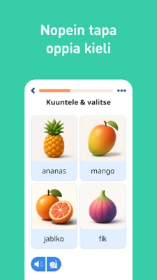 Hyödynnä FunEasyLearnin huippuominaisuuksia, jotka tehostavat oppimistasi merkittävästi. Kauniit, käsinpiirretyt kuvitukset auttavat sinua muistamaan uudet sanat vaivattomammin, ja natiivipuhujien tallentamat äänitteet takaavat tarkan ääntämisen. Seuraa edistymistäsi yksityiskohtaisten tilastojen avulla, kertaa oppimasi älykkäällä kertausjärjestelmällä ja löydä tarvitsemasi nopeasti älykkään haun avulla. Puheentunnistus parantaa omaa ääntämistäsi, ja offline-tila mahdollistaa oppimisen missä tahansa ilman internetyhteyttä. FunEasyLearn palvelee kaikenikäisiä ja erilaisilla tavoitteilla oppivia: löydät räätälöityjä oppitunteja yrityselämän tarpeisiin (esim. taksikuskit, hotellihenkilökunta), matkailijoille (hotellivaraukset, ruokailu, reittiohjeet) sekä aikuisille. Tämän lisäksi voit edetä oppimisessa vaivattomasti keräämällä "kukkia" kielipelien parissa ja käyttää niitä uuden sisällön avaamiseen, tehden oppimisesta palkitsevaa ja jatkuvaa.