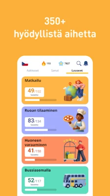 FunEasyLearnin sisällön runsaus on vertaansa vailla. Kielitaitosi kasvaa kattavan 6 000 tšekin sanan kokoelman avulla, joka kattaa yleisimmät substantiivit, verbit ja adjektiivit. Sanasto on järjestetty huolellisesti 7 eri taitotasoon ja yli 200 aihealueeseen, varmistaen jatkuvan kehityksen aloittelijasta edistyneeseen. Lisäksi käytössäsi on yli 5 000 arkipäivän ja matkailun kannalta tärkeää tšekin lausetta, jotka on jaoteltu 10 tasoon ja 120 teemaan. FunEasyLearnin uniikki oppimismenetelmä on kehitetty kielitieteilijöiden ja opettajien tiimin toimesta, yhdistäen aakkoset, ääntämissäännöt, kuvitukset ja interaktiiviset kuuntelu-, kirjoitus- ja puhepelit saumattomaksi kokonaisuudeksi. Tämä mahdollistaa sanojen ja lauseiden opettelun oikean ääntämisen, visuaalisen muistijäljen ja käytännön harjoittelun kautta.